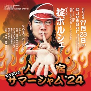 ゲストDJ: 掟ポルシェ DJs: Osd_drunk OKI-CHU shigerusound KUWAGATA MC 悲しげな女が踊る NOZAWA AKI WATANABE OPEN/START 18:00 ¥2,000(w1drink)