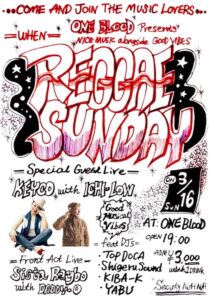SPECIAL GUEST LIVE: KEYCO with ICHI-LOW LIVE: Sista Raybo with DADDY-O DJ: TOP-DOCA shigerusound YABU KIBA-K OPEN 19:00 ¥3,000(w1drink) ONE BLOOD